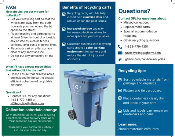 - Aurora Family Leisure Complex - 135 Industrial Parkway North (2 bins)